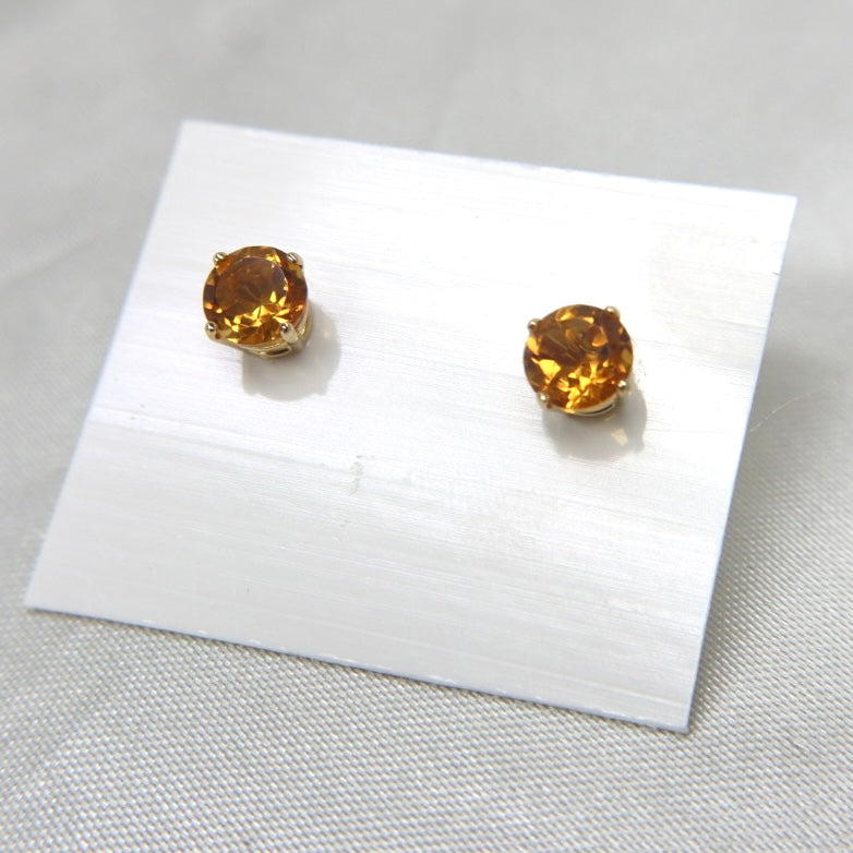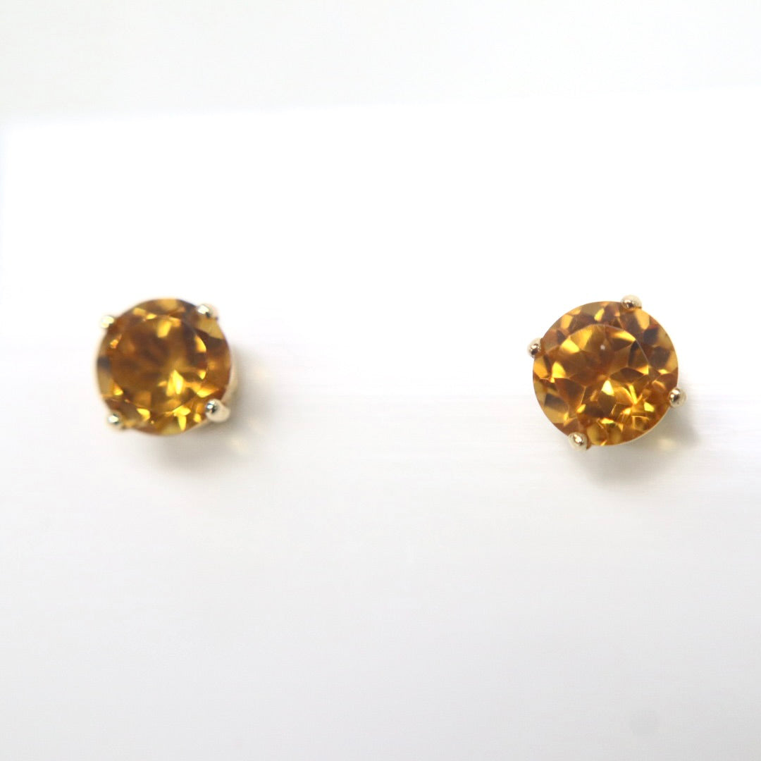 These simple yet stunning 14 karat gold stud earrings feature bezel-set, richly-colored, round faceted citrine.