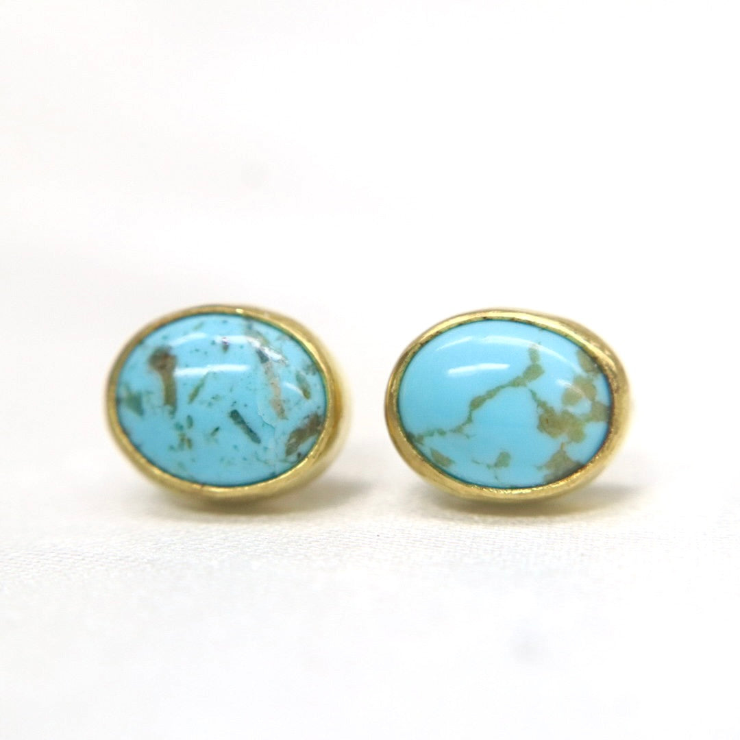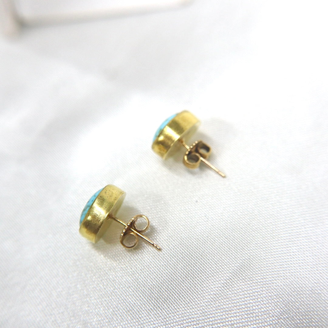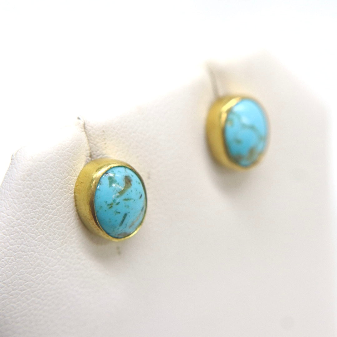 Simple yet stunning 22 karat gold bezel-set turquoise stud earrings with 14 karat posts & nuts.