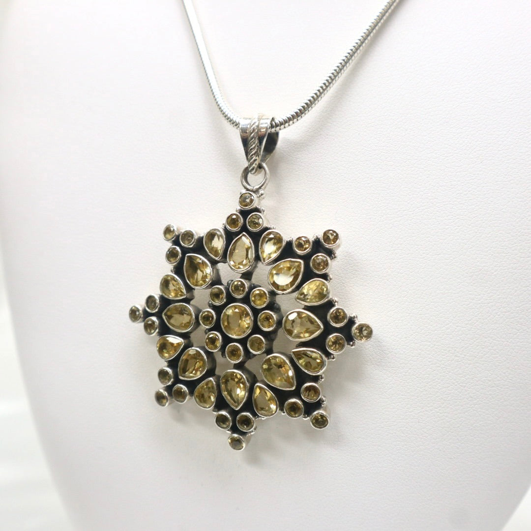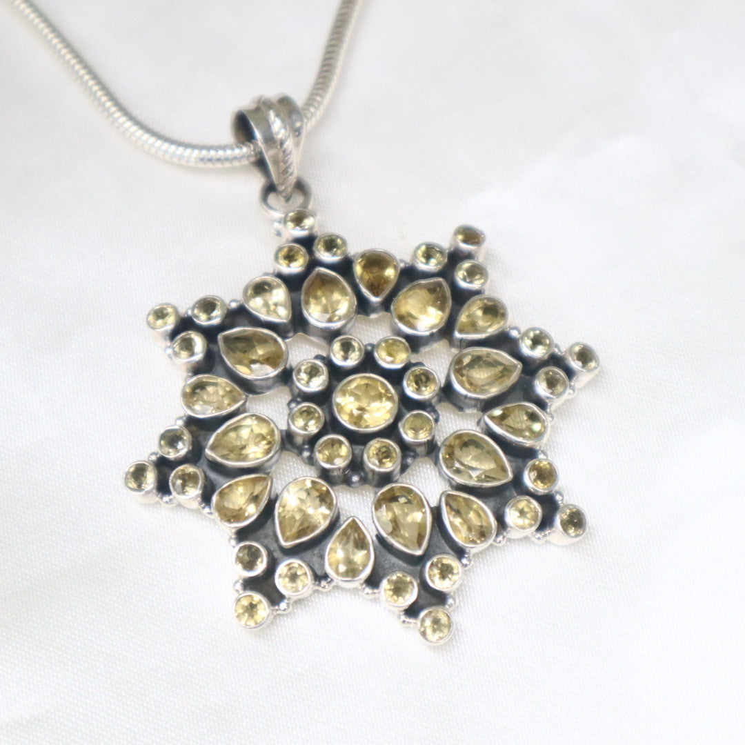 This handmade sterling silver necklace features a stunning star pendant with beautiful faceted citrine.