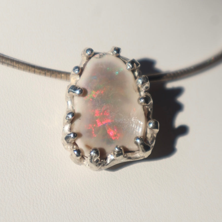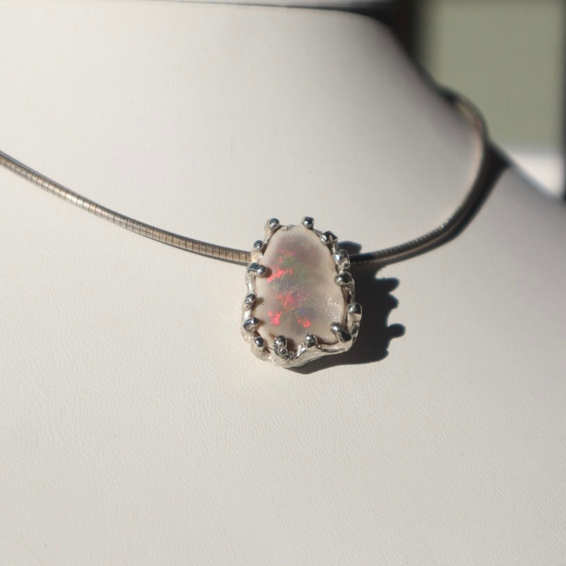 Hand-crafted sterling silver necklace featuring a breathtaking freeform prong-set Ethiopian Opal.