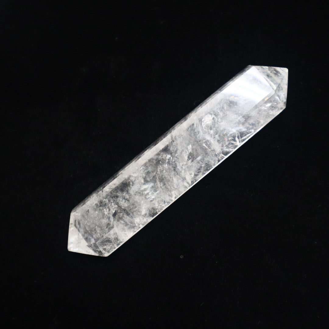 Beautiful doubly-terminated polished clear quartz wand. Wands are known to have the ability to focus energy through their point(s).