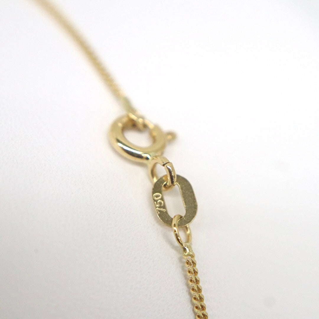 The chain measures approximately 18" in length and is finished with a spring-ring clasp. The chain tag is stamped “750”.
