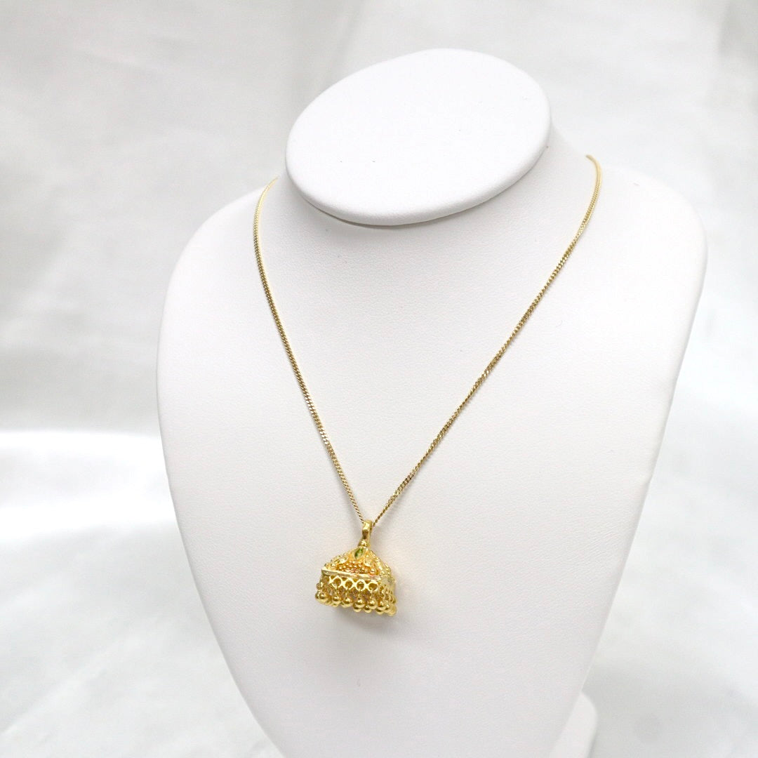 This beautifully handmade & unique 22 karat gold dangle pendant with enamel accents, made in Tibet, sits on an 18 karat gold snake chain.