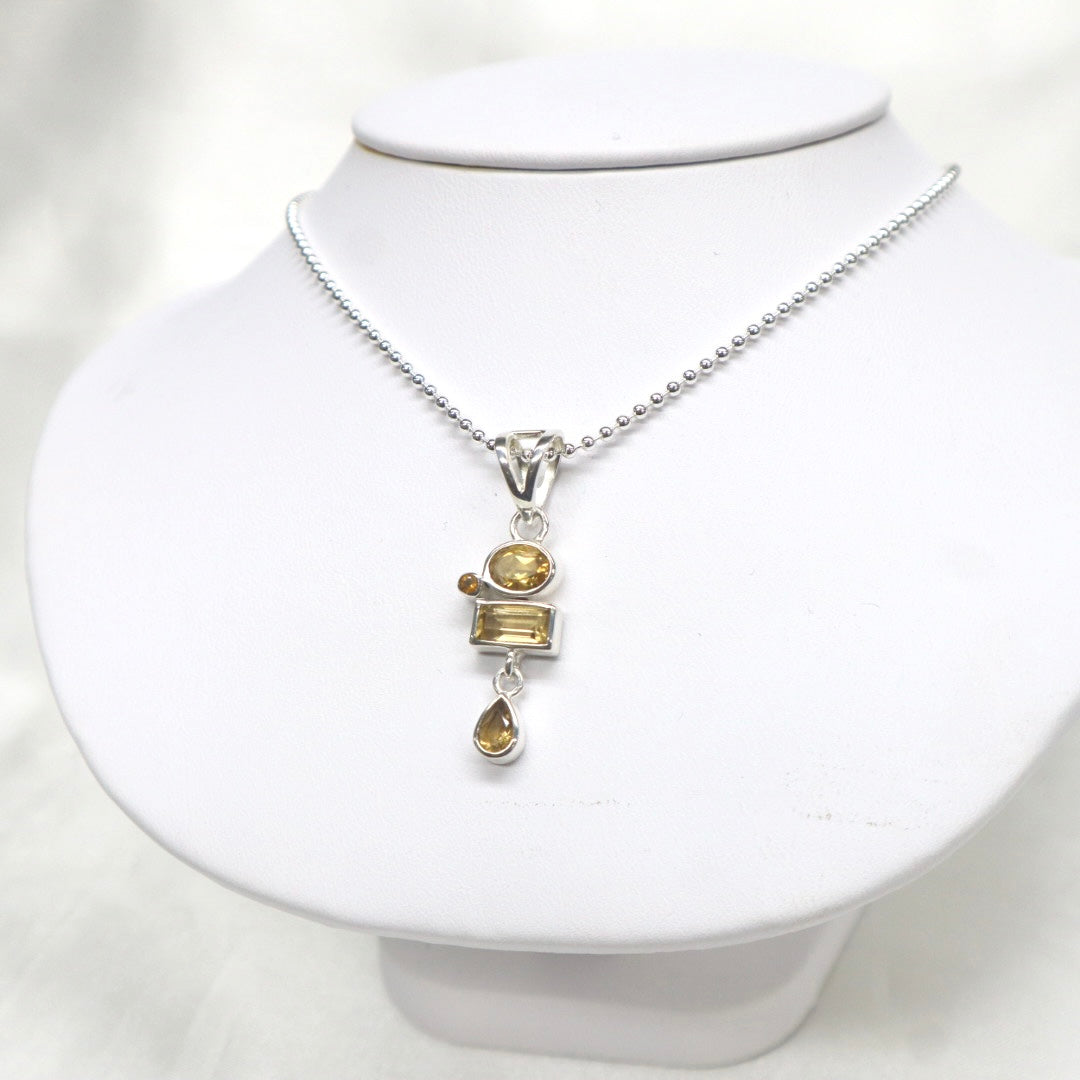 Handmade sterling silver pendant necklace set with beautiful multi-shaped faceted citrine gemstones.