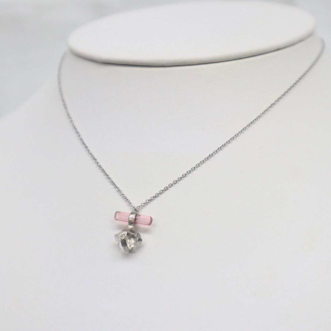 Sterling Silver Pink Tourmaline & Herkimer Diamond Necklace | Felix Z